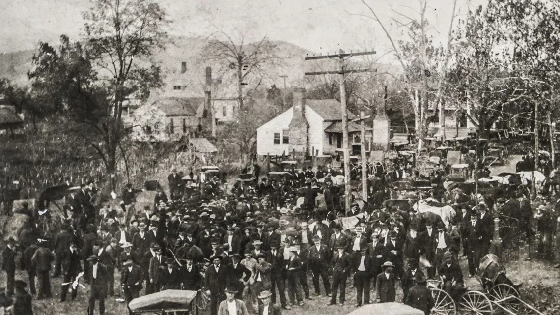 In September 1912, Mae Crow, a young white woman, was found beaten and sexually assaulted in the woods near her home. She was found unconscious and died before she could identify her attacker. However, 24-year old Rob Edwards and two Black teenagers were arrested on suspicion of involvement. A mob of 2,000 white men stormed the jail on September 10, dragged him from his cell, brutally beat him with a crowbar, and shot him multiple times. His body was then dragged to the town square where he was strung up and left on display. The two teenagers were given a sham one-day trial and sentenced to death. Their hanging became a public spectacle, drawing thousands out to witness their murder.